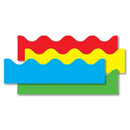 Perfect to use alone or in layers, each set of classic-color scalloped borders includes 52 strips measuring 3' x 2.25" each for a total length of 156 feet of border per set! Includes four colors: red, yellow, green and blue. The strips are great for framing your bulletin boards and windows or for complementing charts and class creations. Borders are available in a variety of colors, styles, sizes, and prints to suit any classroom theme! Each set includes 52 strips (156 feet). Sold as 2 packs for a total of 104 strips (312 feet) of border.