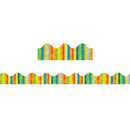Use Eureka School Extra Wide Deco Trim to add a finishing border to your displays, windows, doorways or chalkboards. Dr. Seuss Fashion-Stripes Extra Wide Die Cut Deco Trim measures 3.25" wide, and each package contains 12 strips (each 37" long) for a total of 37 feet. Full color illustration printed on card stock. Scalloped edge detailing. Coordinates with the Dr. Seuss Collections.