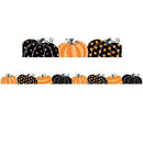 Stripes, scallops and dots adorn the pumpkins on this festive Pumpkin Patch Border! The charming modern design of this orange, black, grey, and white border make it versatile for trim on a seasonal classroom bulletin board or as a Halloween decoration around a school, office, college dorm, church, or employee break room. Includes 35 feet per package. Width: 2.75".