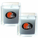 Our candle set features 2 lightly vanilla scented candles with fully cast metal Cleveland Browns emblems that have an enameled team color finish. Officially licensed NFL product Licensee: Siskiyou Buckle. 2 glass candles. 2 x 2 inch candles. Lightly vanilla scented. Cleveland Browns metal emblems
