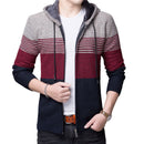 Casual Style Men Cotton Stripes Printed Long Sleeves Hooded Warm Outerwear