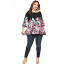 Elegant Women Cool-shoulder Flare Sleeve Floral Print Loose Pattern Blouse