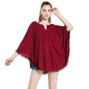 Fashion New Arrival Casual Style Women Solid Color V Neck Embroidered Dolman Sleeve Top