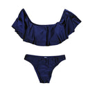 Fashion Pleated Falbala Off Shoulder Beach Holiday Sexy Girls Two Pieces Bikini Swimwear Design Swimsuits For Women
