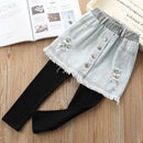 Girls Denim Button Skirts Patchwork Leggings