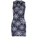 Gothic Women Unique Spider Print Sleeveless Tassel Fringed Bodycon Dress