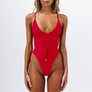Hot Sale Backless Solid Color Sexy High-cut One-piece Swimwear
