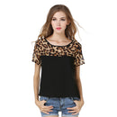 Hot Sale Women Crew Neck Short-sleeve Leopard Printed Chiffon T-shirt