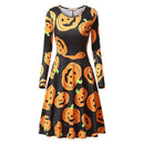 Hot Sale Women Round Collar Long-sleeve Pumpkin Print Halloween Dress