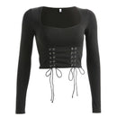 Hot Sale Women Square Neck Long-sleeve Lace-up Design Crop Top