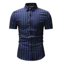 Men Vertical Stripe Print Loose Short Sleeves Shirt