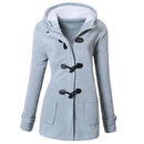 New Arrival Women Casual Resin Horn Buttoned Thickening Coat