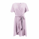 Plain Satin Fabric Ruffled Short-sleeve Irregular Hemline Mini Wrap Dress