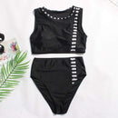 Plus Size Contrast Stripes Print Women High-waisted Two-piece Swimwear