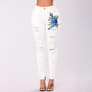 Red Flower Pattern Embroidery Design Ripped Black And White Pencil Jeans