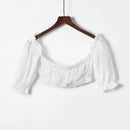 Sexy Hollowed Design Women Short-sleeve Square Neck Cropped Blouse