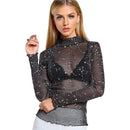 Sexy Lady Nightclub Pattern Shiny See-through Mesh Tight Tops