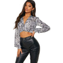 Sexy Lady Snakeskin Print Long-sleeve Lapel Collar Crop Blouse