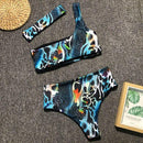 Sexy One Shoulder Snakeskin Print Two-pieces Tankini Swimwear