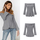Sweet Young Lady Sexy Off-shoulder Design Flare Sleeves Autumn Winter Blouse