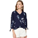Three-quarter Sleeve Women V Neck Floral Blouse