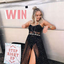 Unique Vacation Pattern Star Sequin Decor See-through Mesh Fabric Sexy Slit Dress