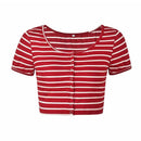 Woman Hot Sale Fashion Style Stripes Slimming Navel Exposed Crop Top T-shirts