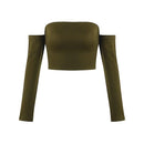 Woman Sexy Style Tight Long Sleeves Off Shoulder Lace Up Camis