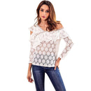 Women Asymmetric Design Solid Color Flouncing Lace Blouse
