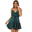 Women Backless Polka Dot Printed Elastic High-waisted Satin Dress