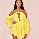 Women Casual Loose Pattern Off-shoulder Long-sleeve Ruffled Vacation Dress