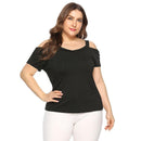 Women Casual Solid Color Cool-shoulder Short-sleeve T-shirt