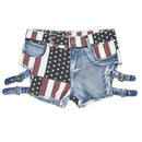 Women Fashion High-waisted American Flag Print Ripped Denim Shorts