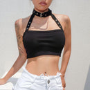 Women Fashion Sexy Gothic Style Halter Pattern Crop Top