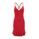 Women Fashion Style Sexy Deep V Hot Vacation Flouncing Hem-line Dress