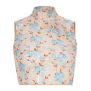Women New Sleeveless Design Floral Print Mesh Hollow Out Design Crop Top