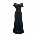 Women Party Wear Classic Solid Color Lace Defined Waist Long Dress