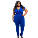 Women Plus Size Casual Short Sleeves V Neck Jumpsuits