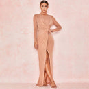 Women Sexy Long-sleeve Hem Slit See-through Gauze Maxi Dress