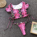 Women Sexy Square Neck Short-sleeve Drawstring Two-pieces Bikini Swimwear