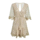 Women V Neck Flare Sleeves Design Summer Beach Mini Dress
