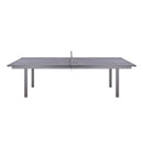 Give an exquisite look to your dining with this game table . Designed with a beautiful and chic silhouette, it comes with a large glass top with removable net and rests on a metal frame and legs. Having this table is a great way to update the look of your dining room and serve meals with perfect neatness. With its large size, family and friends are well accommodated and can enjoy meals together. Its dark gray finish will add a lasting shine to your home. Dimensions: 108" X 60" X 30".