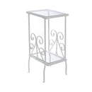 Small Accent Table - 12" x 16" x 30" White, Clear, Metal, Tempered Glass - Accent Table