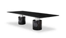 Create an exquisite look in your dining with this delectable dinning table. Designed with a beautiful and chic silhouette, it comes with a rectangular top and rests on a solid cylindrical base. Having this table is a great way to update the look of your dining room and serve meals with perfect neatness. With its large size, family and friends are well accommodated and can enjoy meals together. Its black marble finish will add a lasting shine to your home. Dimensions: 120" X 48" X 30".