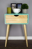 Wood End Tables - 16" X 12" X 24" Aqua MDF, Wood End Table with Drawer