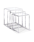 Nesting Side Tables, clear glass, stainless steel base, set of 3