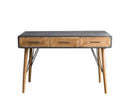 Complete your living space with this contemporary rectangular shape with slim legs console table. The antiquely cement-colored look finish and three drawers made of natural firwood for storage, and solid wood legs with metal support. This console table is a perfect addition to any decor.