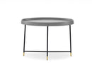 Side Table Gray oak veneer Black metal Frame and Brass color Cap.