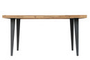 Very versatile and very rustic. This one of a kind dining table is set to give you dining room the boost that it needs. Made from acacia wood with angled patterns, it comes in a variety of colors so you can choose an exact match for your home. Metal legs provide the balance needed for meal times. The table's tobacco finish is perfect for any rustic home. Dimensions: 38" X 72" X 36".