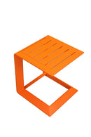 Stylish and sleek this modish orange side table is following minimilast design patterns and embracing modernism. Exceptionally fine lined side table is inspired by a contemporary ideas of cutting excess. With a fine sleek and slender body this outdoor furniture will upscale your patio or outdoor settings. Its framework of this table has been constructed of Anodized Aluminum frame. Place it in your garden, terrace, patio, backyard for transformed look and adorn it with your essentials. Dimensions: 20 in. L x 17 in. W x 17 in. H